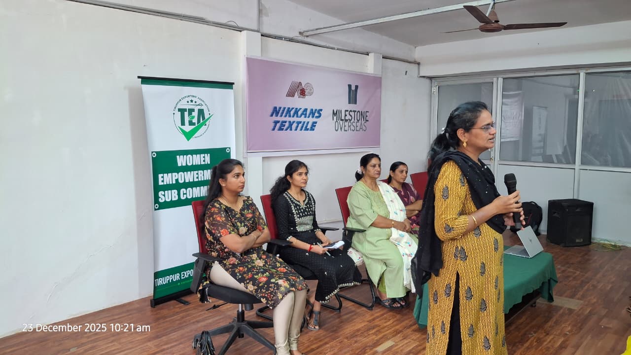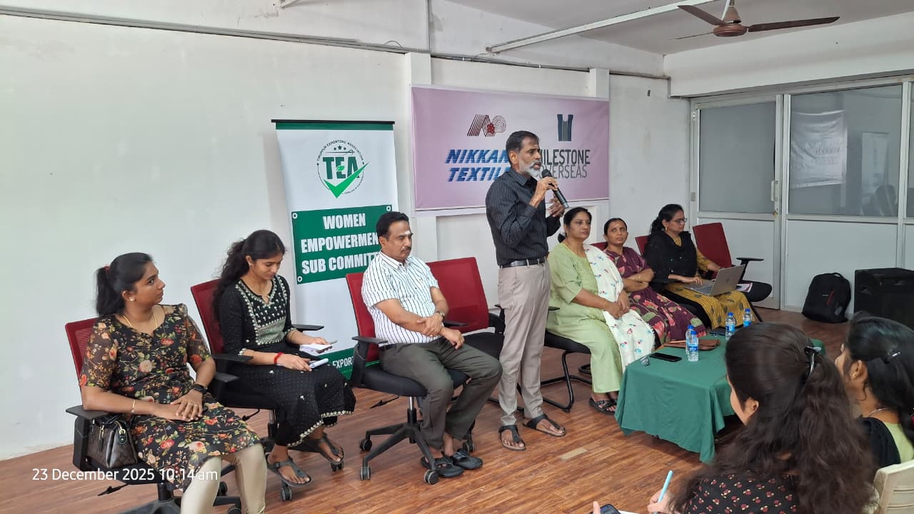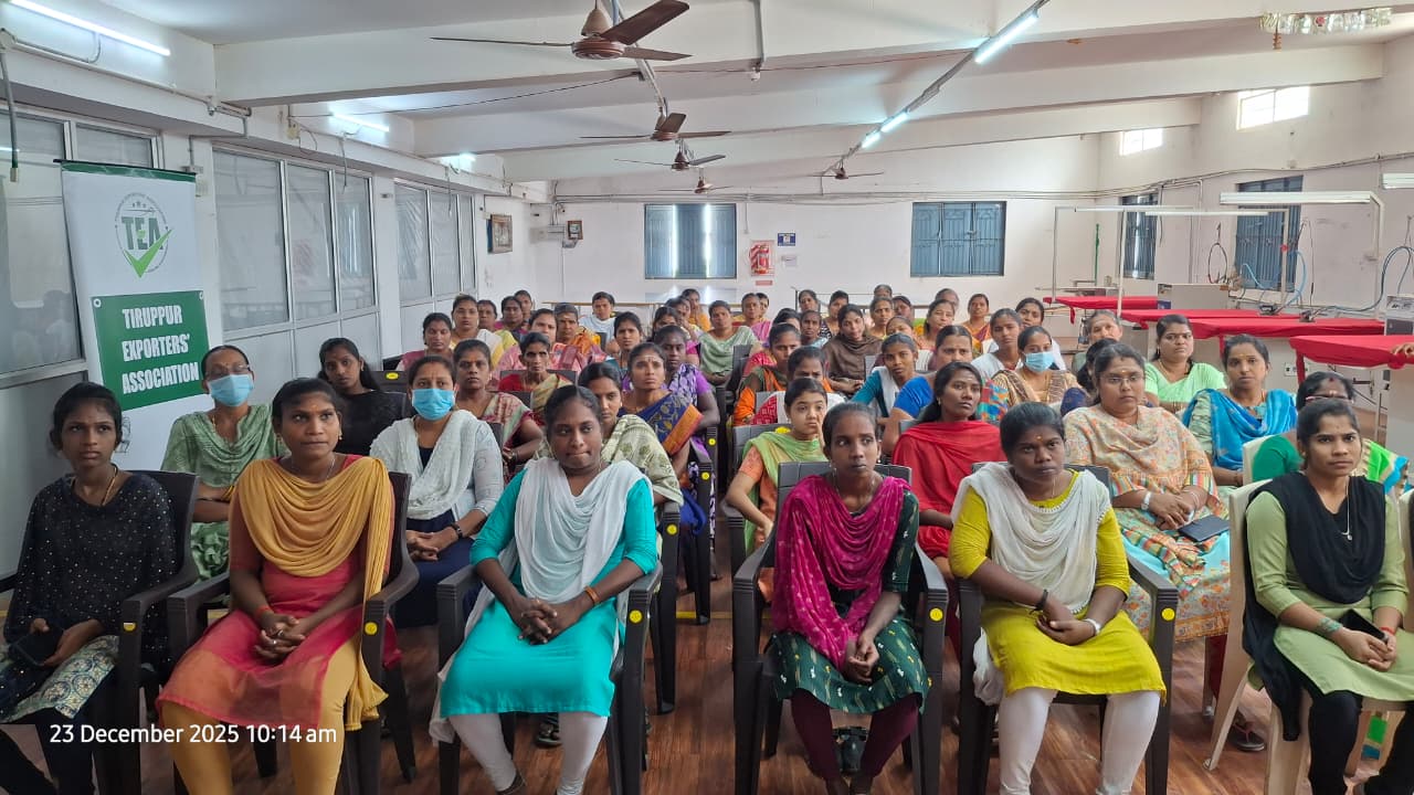 Mr. M. Anand, Joint Secretary, TEA, shared his insights on workplace safety and the health of women workers in the garment sector. He highlighted that women constitute nearly 65% of the workforce in the garment industry, with approximately 4.5 to 5 lakh women employed in various roles across Tirupur. Additionally, he noted that both physical and mental health of workers significantly influence their productivity in factories, and illnesses such as diabetes, blood pressure, etc., should be diagnosed and treated in a timely manner.
